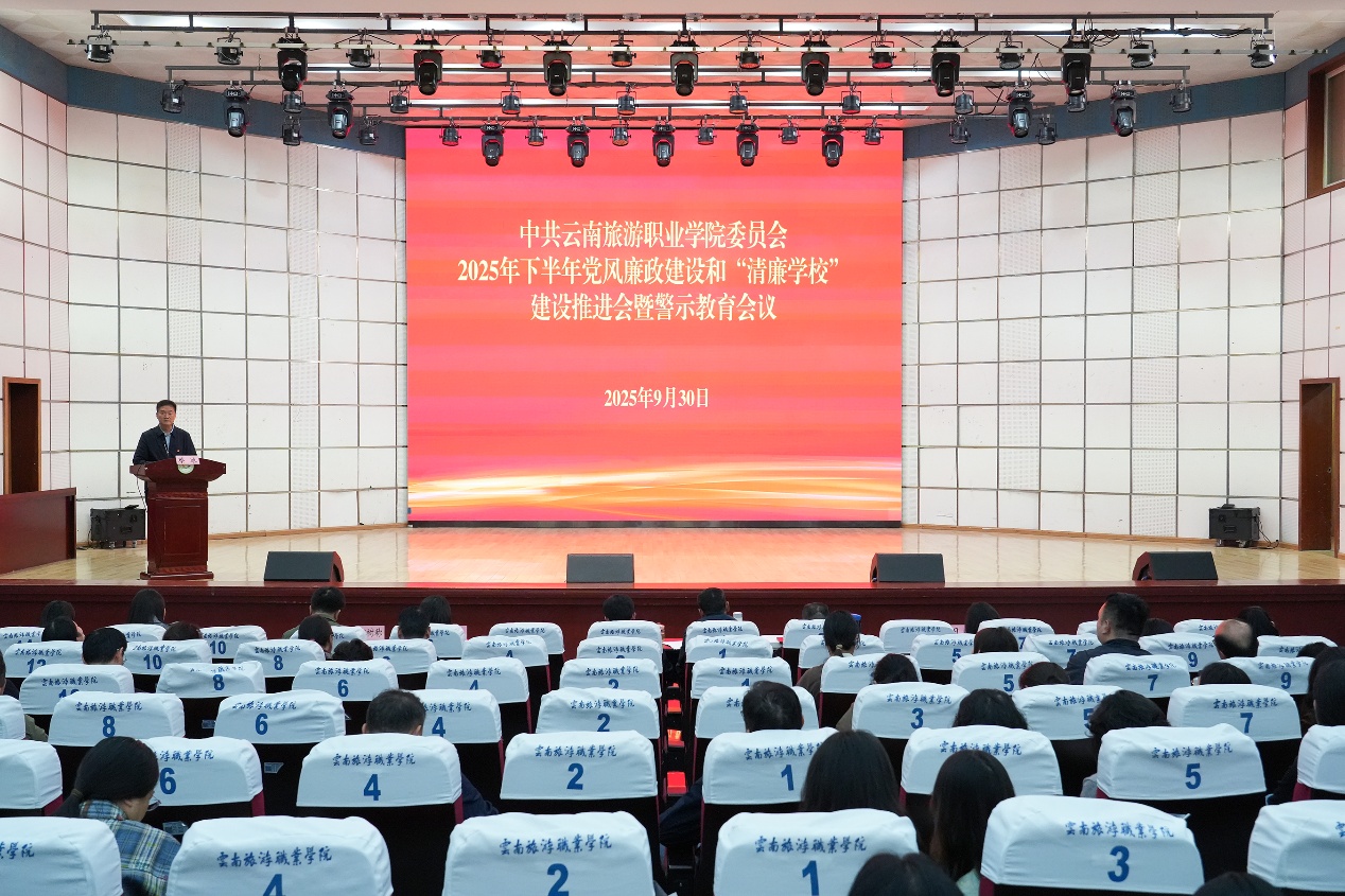 党委书记王翔在讲话时指出,今年是“十四五”收官、“十五五”开局承上启下的关键一年。坚定不移纵深推进全面从严治党和清廉学校建设,是学校党委的重大政治责任,是推进“1512”工程、确保教育高质量发展三年行动计划“上台阶”、新一轮高水平专业群建设“起好步”和实现学院“两步走”战略目标的坚强保障。他要求,全校党员干部要树牢旅院“命运共同体”意识,践行“主动想、扎实干、看效果”的作风要求,抓实下半年工作。一是要突出政治引领,坚定不移以新时代全面从严治党新要求推进党风廉政建设;二是扛牢主体责任,以钉钉子精神持续抓好专项整治;三是坚持问题导向,以自我革命精神狠抓干部作风建设;四是聚焦高质量发展,以“五清旅院”建设为抓手推进学校2025年目标任务落地见效。