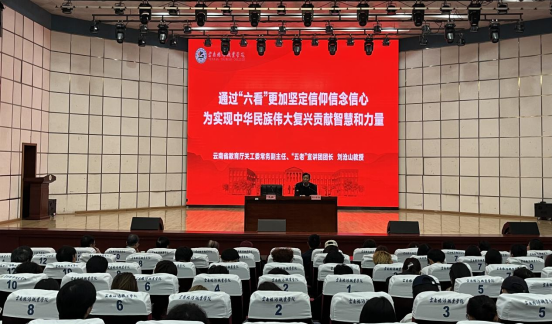 近日,云南省教育厅关工委“五老”宣讲团走进我校开展主题宣讲。本次宣讲由教育厅关工委常务副主任、“五老”报告宣讲团团长刘沧山教授主讲,我校党委副书记王敏主持。