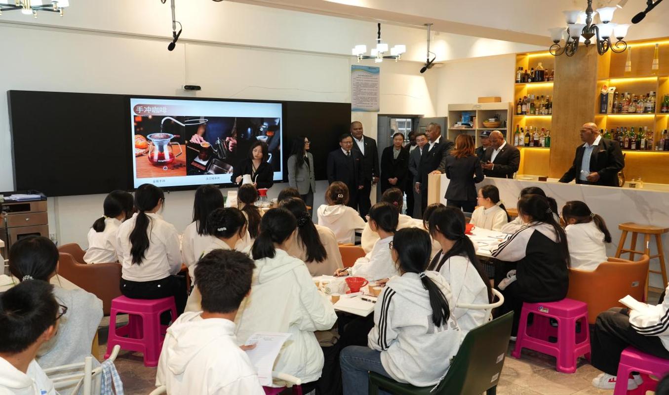 在酒店管理学院,代表团先后参观了咖啡双创教室、茶艺审评教室,并现场观摩了饮品制作课堂教学,对相关课程紧密结合地方特色产业、注重实践能力培养的教学模式给予高度评价。整个参观过程中,双方围绕文旅人才培养、餐饮文化合作等议题进行了非正式会谈。