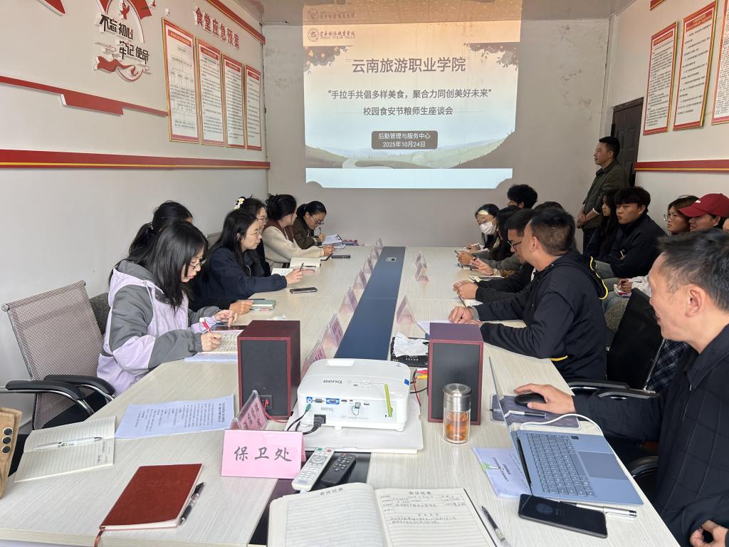 近日,以“手拉手共倡多样美食,聚合力同创美好未来”为主题的师生座谈会在校顺利召开。此次座谈会旨在响应2025年世界粮食日及全国粮食安全宣传周,进一步搭建师生、学院与食堂服务方之间的常态化沟通机制,共同守护校园食品安全,倡导爱粮节粮新风尚。