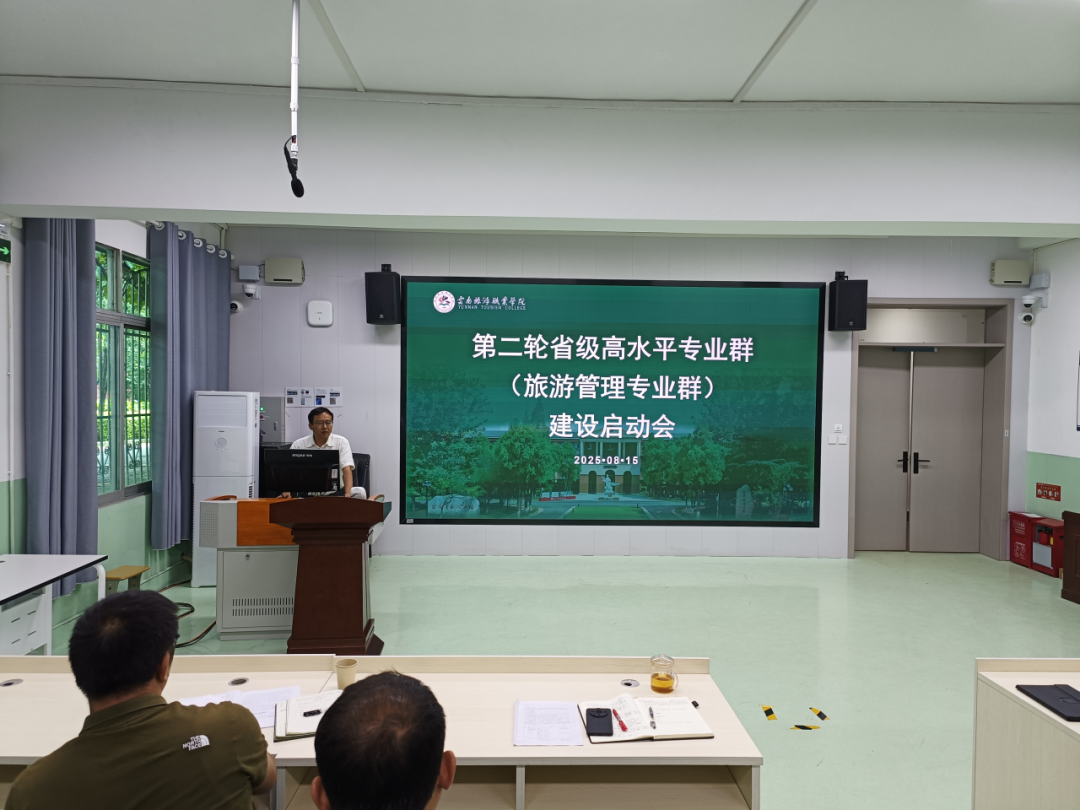 蔡冰院长从“高水平专业群建设的基本逻辑”、“建设重点、难点”、“建设方案修订基本原则”等方面对第二期高水平专业群建设进行深入解读与工作总体部署。他强调,高水平专业群的建设关系学校办学定位、办学理念、专业布局、培养成效及综合改革和可持续性发展,责任重大,使命光荣。全体干部要提高认知,群策群力,改进“三风”、艰苦努力、创造性地开展建设工作,为学院内涵式高质量夯实基础;要坚持以需求分析为前提、科学组群为基础、立德树人为根本、产教融合为路径、课程建设为重点、师资队伍为关键、实践教育为特色、职业培训为职责、研发服务为使命、有效治理为保障,以省级高水平专业群建设带动校级高水平专业群建设,系统推进专业、课程、教材、教师、实训基地等教学关键要素改革,统筹推进办学治校综合改革,打造云南旅游职业教育品牌,全面提升学院办学内涵质量水平,服务好、支撑好云南文化旅游产业发展。