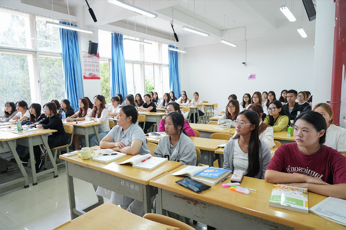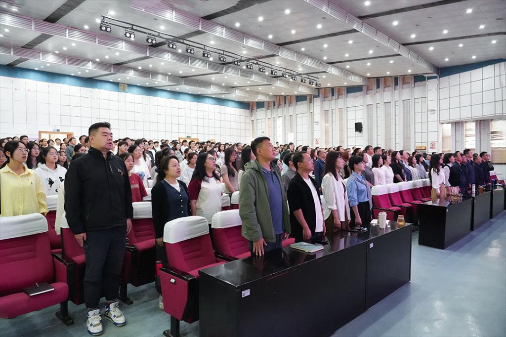 主会场设在报告厅,校领导、全体中层干部、教师及学生代表进行集中收看;其余师生分别在校本部、高新区教学实训基地教室进行同步收看。