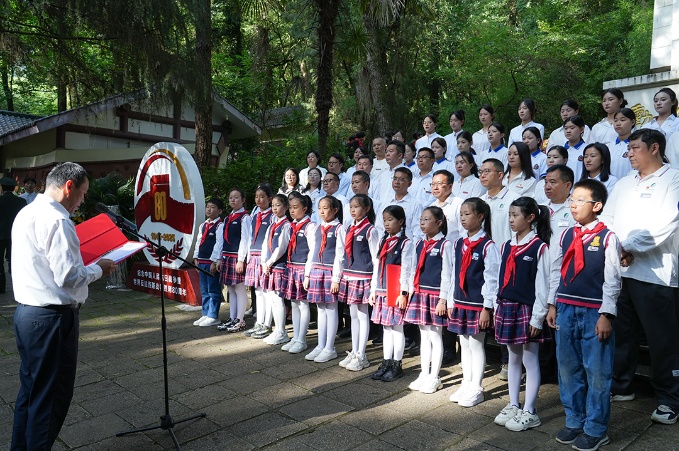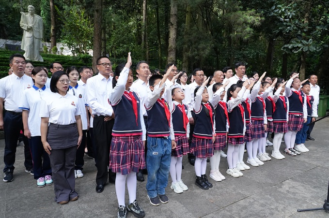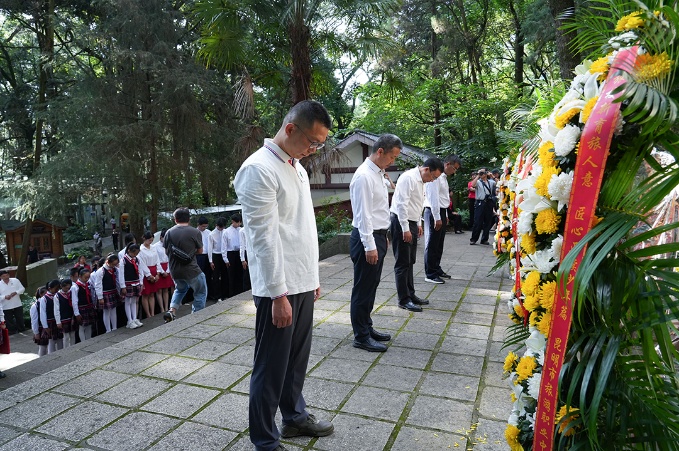 我校党委书记王翔在讲话中强调,要铭记南洋华侨机工群体、聂耳等革命先烈,传承和弘扬伟大抗战精神,要从抗日战争的伟大胜利中汲取以中国式现代化全面推进强国建设、民族复兴伟业的智慧和力量。要始终肩负“为党育人、为国育才”的神圣使命,牢牢把握教育的政治属性、人民属性和战略属性。要充分发挥大思政作用,大力弘扬伟大爱国主义精神和伟大抗战精神,共同传承利用好云南红色文化资源,不断深化爱国主义教育和铸牢中华民族共同体意识教育,合力推进大中小学思政课一体化建设。