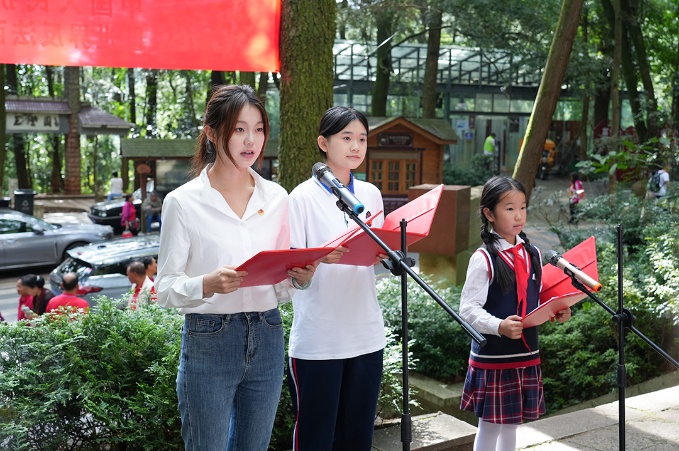 由我校及昆明市旅游职业中学、昆明市五华区龙泉路小学三校组成的大、中、小学学生团联合朗诵了《南侨机工白雪娇留给父母的一封告别信》,青年和少年的声音交织,讲述着南洋华侨机工白雪娇弃笔从戎、热血报国的坚定信念与崇高精神。