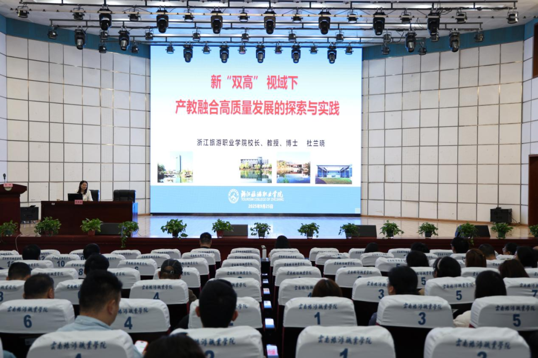 为深入贯彻落实国家职业教育改革,加快推进新“双高”建设,进一步提升产教融合水平,9月25日上午,我校特邀浙江旅游职业学院党委副书记、院长杜兰晓教授开展专题讲座。讲座由我校党委副书记、院长蔡冰主持。