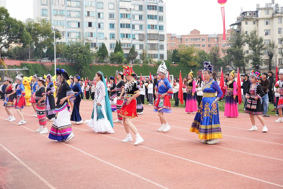 紧随学生方阵之后的是教职工方阵,平日里辛勤耕耘于讲台的老师们,此刻同样精神焕发,体现着全员参与、共享运动快乐的精神。