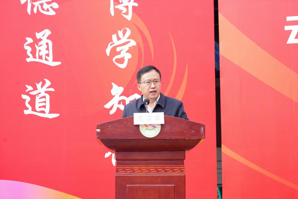 在开幕式致辞中,王翔书记指出建设体育强国不仅体现在竞技赛场上的争金夺银,更体现在国民身体素质的增强和健康水平的提升,特别体现在青少年体魄强健、意志坚强的培育上,我们举办体育文化节和运动会,正是积极响应国家号召,将增强学生体质、促进健康成长作为重要任务。他表示,近年来学校始终坚持“五育并举”,深入推进“体教融合”,体育设施不断完善,体育活动日渐丰富,体育水平不断提升,取得了令人瞩目的成绩,体育文化节和运动会,是我们检验体教融合成果、展示五育并举风貌的广阔平台。他希望全体运动员能够充分发扬勇敢顽强的拼搏精神和团结协作的集体主义精神,赛出风格、赛出水平、赛出友谊,全面展现我校师生昂扬向上的精神风貌和良好的体育道德风尚,用汗水和激情诠释体育的真谛,用奋斗和拼搏书写青春的华章。