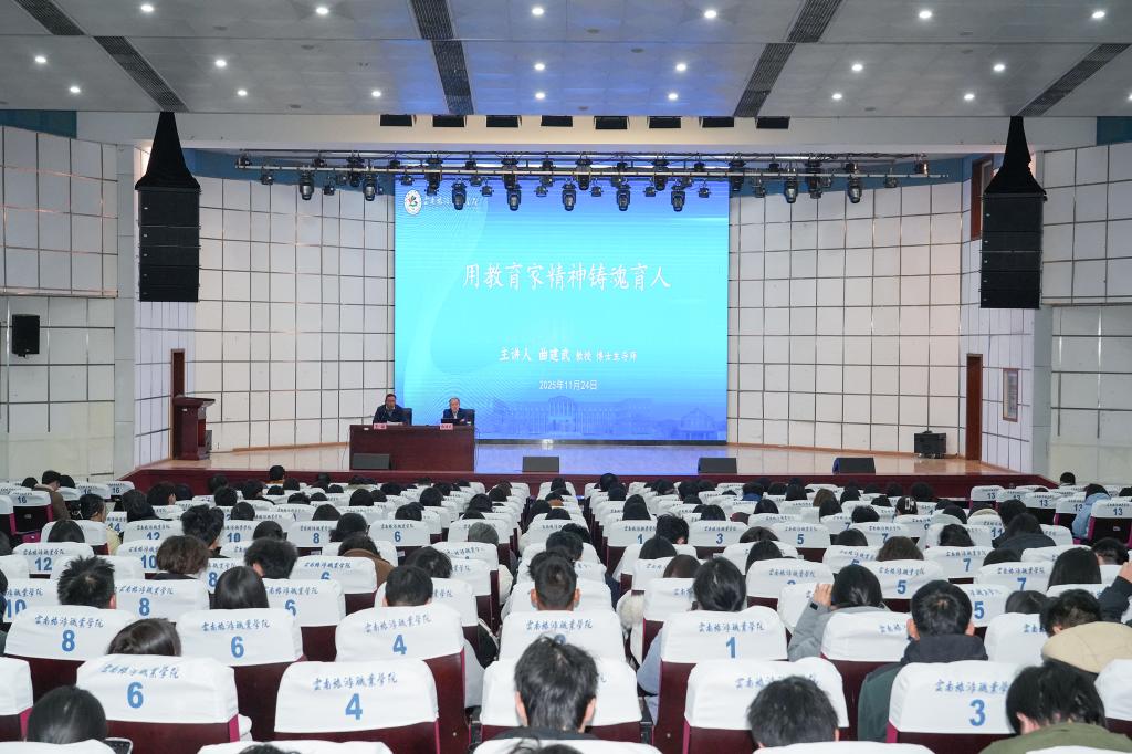 为深入学习贯彻党的二十届四中全会精神和习近平总书记在全国教育大会上的重要讲话精神,进一步推动新时代立德树人工作的深入开展,11月24日上午,我校特邀“时代楷模”、大连海事大学曲建武教授作《以教育家精神铸魂育人》专题讲座。讲座由党委副书记王敏主持,专职辅导员、专职思政课教师、学业导师、近两年新入职教师和学生代表近500人参加讲座。