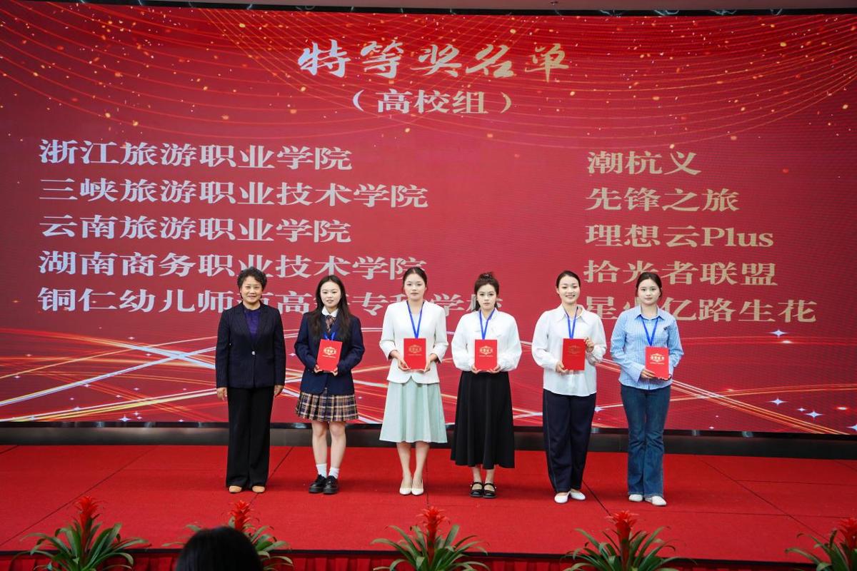 近日,由中国旅游协会指导,中国旅游协会旅游教育分会、浙江旅游职业学院共同主办,舟山市普陀区文化和广电旅游体育局、杭州领云软件有限公司协办的第三届全国旅游院校旅游产品策划大赛在浙江舟山普陀区落下帷幕。我校旅游管理学院选派的五支高职组学生团队成功入围决赛,团队成员凭借专业群坚实的教学积淀、扎实的专业技能、创新的策划理念及出色的现场展示,从全国各地参赛队伍中脱颖而出,最终斩获高校组特等奖1项、一等奖2项、二等奖2项的优异成绩,充分展现了云旅学子的卓越风采,彰显了学校旅游管理省级“双高”专业群的建设成效与育人实力。
