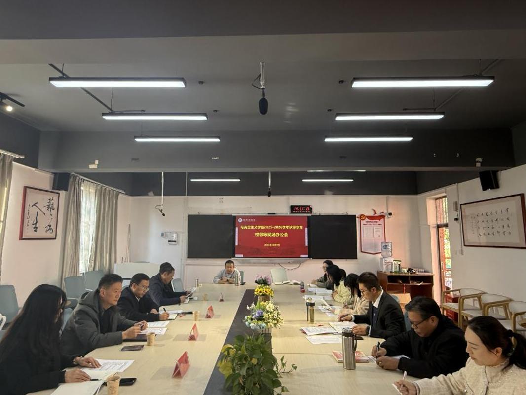 蔡冰院长充分肯定了近年来马克思主义学院建设取得的显著成效,指出现场办公会就是要直面问题、解决问题。他要求,要紧紧围绕构建学校“大思政”育人格局、“大思政课”建设目标,充分发挥思政课教师思想引领作用;要聚焦学校“十五五”规划,强化师资队伍建设,提升教师课堂教学水平,深化教学改革创新,以切实举措推动学校思政课建设内涵式高质量发展。同时,他指出,要坚持不懈抓好师德师风建设,思考并落实好考核评价机制。