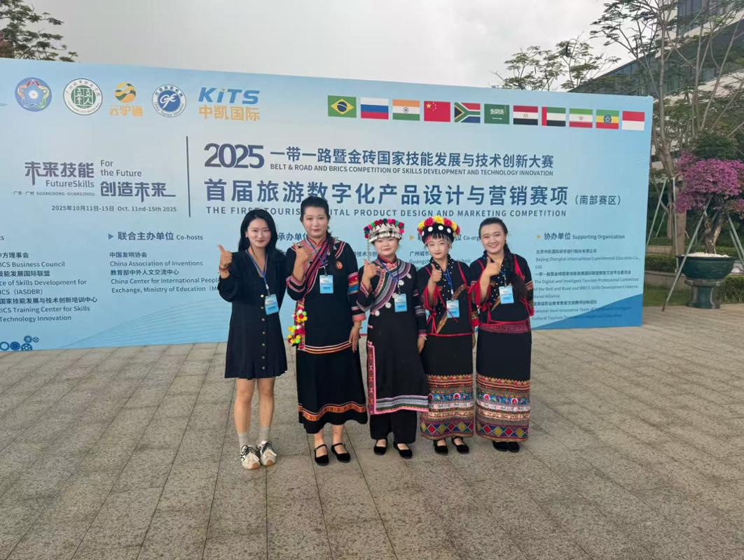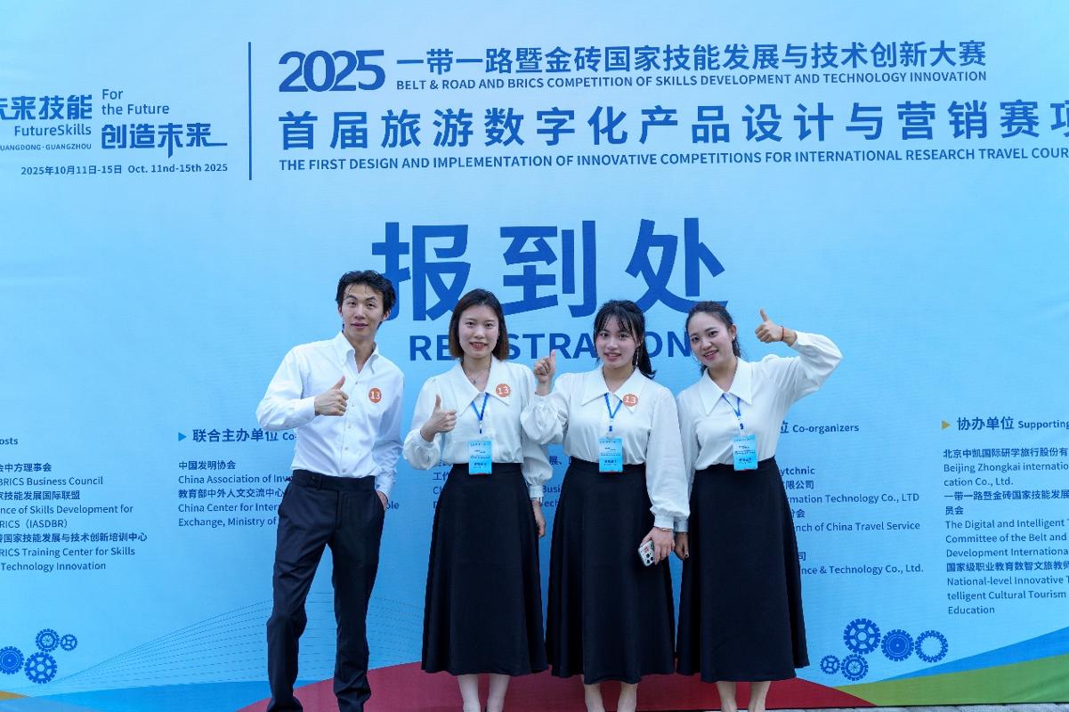10月11日-14日,由教育部中外人文交流中心、中国发明协会、金砖国家工商理事会中方理事会“一带一路”暨金砖国家技能发展国际联盟联合主办,广州城市职业学院联合承办的2025一带一路暨金砖国家技能发展与技术创新大赛首届旅游数字化产品设计与营销比赛(南部赛区)落下帷幕。我校旅游管理学院派出的三支队伍参赛并取得优异成绩,最终斩获一等奖1个、三等奖2个,其中学生1队与教师队成功突围,获得晋级全国总决赛的资格,充分展现了学院在旅游数字化技能人才培养与实践教学领域的扎实成果。