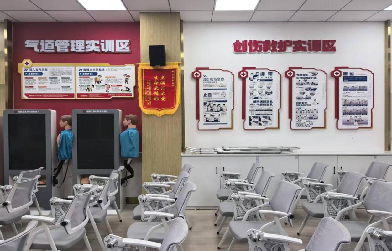 新建成的应急救护实训室设计科学合理、设施设备先进、功能齐全完备,不仅配置了心肺复苏交互实训套件、海姆立克AI互动实训套件、自动体外除颤器(AED)训练机、创伤模拟人等现代化急救训练器材,还科学设置了多种旅游活动突发场景模拟模块。该实训室实现了由传统理论课堂向高度仿真“实战”环境的转变,学生可通过沉浸式演练,系统掌握从判断评估、急救呼救到心肺复苏、创伤包扎等应急救护全流程技能,有效提升学用结合实效,为即将从事一线服务工作的学生沉着应对突发状况、筑牢生命安全防线奠定了坚实基础。
