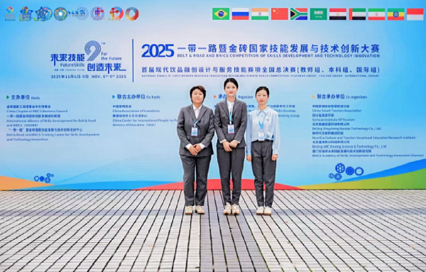 近日,2025一带一路暨金砖国家技能发展与技术创新大赛首届现代饮品融创设计与服务技能赛项全国总决赛在四川圆满落幕。由我校酒店管理学院冯骏宁、毛子婧、舒娜教师组成的参赛队凭借扎实的专业功底、创新的设计理念和出色的现场表现,在教师组激烈角逐中脱颖而出,荣获优秀奖。