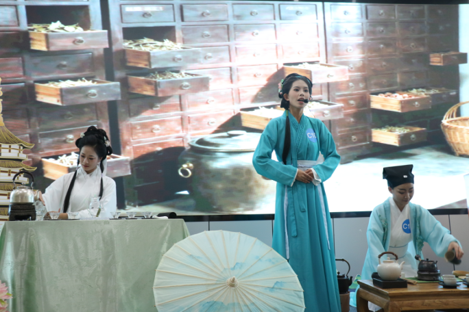 作为本届大赛的承办单位,6163银河线路检测中心选派两支参赛队伍,赛前对其进行了为期一个半月的集中强化训练。其中,一支队伍以中国家喻户晓的经典传说《白蛇传》为蓝本进行艺术创作,将茶艺与经典叙事深度融合;一支队伍则聚焦地方特色,以“云南墨红玫瑰”为主题,展现了中国玫瑰与茶文化从历史走向世界、从助力“乡村振兴”到实现“文化出海”的壮美历程。两支队伍的作品不仅是一场美轮美奂的茶艺演示,更是一次关于文化自信与创新传承的深刻表达。
