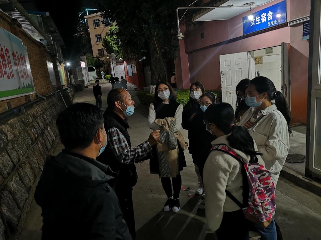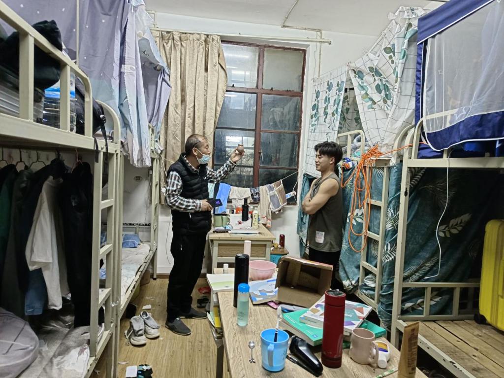 2022年4月7日晚上,经济管理学院张小军书记和赵云栋院长,带领学院辅导员共计12人走入宿舍,走近学生,检查男生宿舍的卫生情况,并带去疫情下的人文关怀。