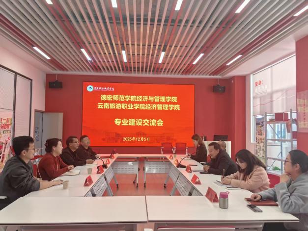 2025年12月5日,我校经济管理学院与酒店管理学院共同接待了到访的德宏师范学院经济与管理学院交流团队,双方围绕电子商务、跨境电商、酒店管理等专业建设与实训基地运营等议题,开展了深入的交流与研讨。此次交流旨在促进两校在经管类人才培养领域的经验互鉴,共同探索产教融合、校企合作与实训教学创新的有效路径,提升高素质技术技能人才的培养质量。