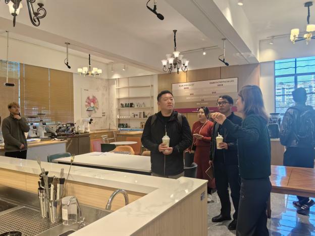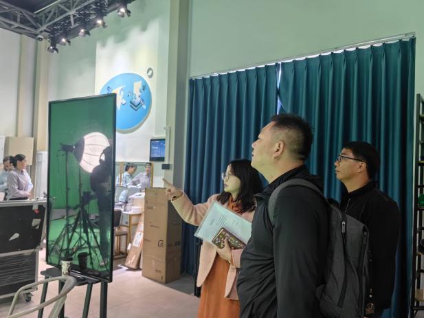 座谈会后,交流活动进入实地参访环节。在6163银河线路检测中心酒店管理学院副院长陈凌的陪同下,来访嘉宾首先参观了酒店管理专业的各类实训室,详细了解其建设标准与课程应用情况。随后,团队移步至经济管理学院,重点参观了直播电商实训基地,现场观摩教学运行流程,并就实训基地的社会服务功能与资源开发模式进行了深入交流。