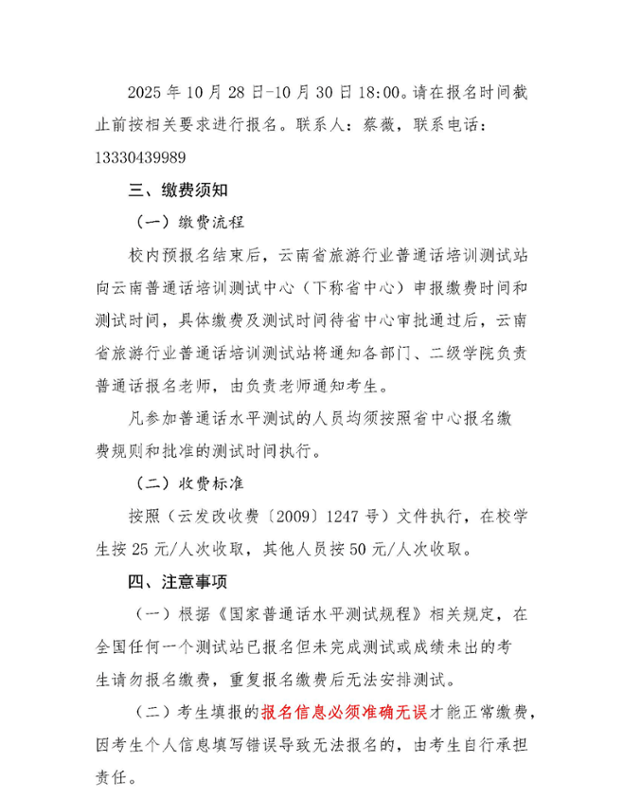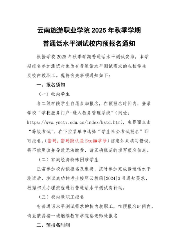 关于开展2025年秋季学期普通话水平测试校内预报名的通知