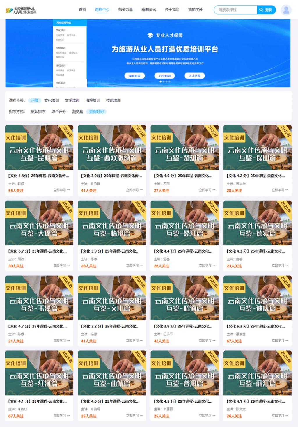 近日,我校圆满完成为云南省旅游从业人员线上培训平台“文化传承与文明互鉴”模块录制16个州市课程的工作。此项工作旨在提升全省旅游行业从业者综合素质,助力文旅产业高质量发展。该任务的高效完成,得益于我校与云南省文化和旅游培训中心此前联合建立的培训联合体。在合作框架下,由继续教育学院牵头,旅游管理学院、酒店管理学院和外语学院协同配合,各部门通力协作,克服了业务工作与期末繁重工作安排的冲突,在一个月内保质保量地实现了责任、人员、工作“三到位”,为平台注入了新的活力。