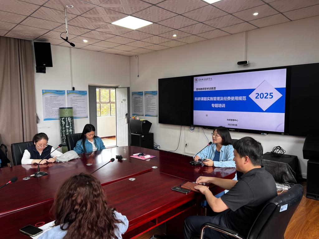 为进一步提升学院科研课题实施的规范性和实效性,强化管理效能,科研管理中心于2025年9月策划“青年教师学术训练营”活动,以“科研课题实施管理及经费使用规范”为主题,集中对2025年度申报获批立项的院级课题负责人及部分团队成员进行专题培训。