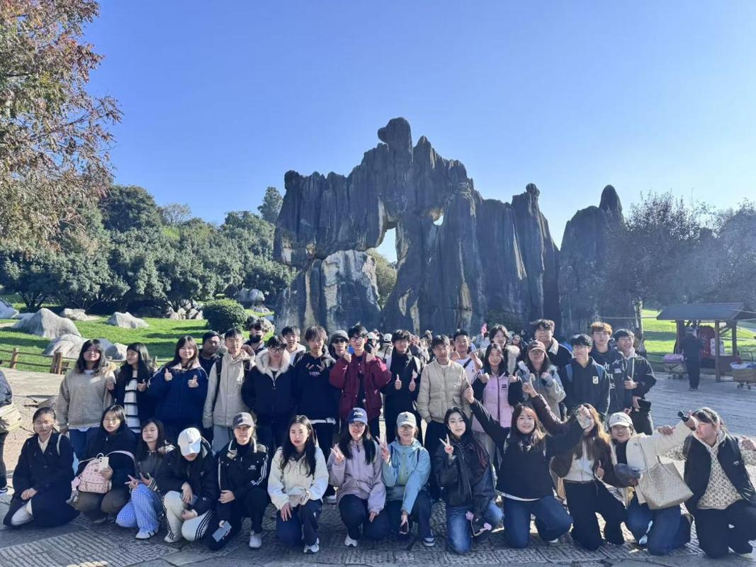 实习首站,师生一行前往世界自然遗产、被誉为“世界喀斯特地貌精华”的昆明石林风景区。在专业教师的带领下,同学们深入探究石林地貌的形成历史、独特地质特征及蕴含的彝族文化内涵。大家手持笔记本认真记录,驻足细观地质纹理,围绕“石林旅游资源深度开发”“生态保护与旅游发展平衡”“民族文化与地质景观融合路径”等议题展开热烈小组讨论,各抒己见碰撞思维火花,将课堂上的旅游理论知识与实地场景精准对接。