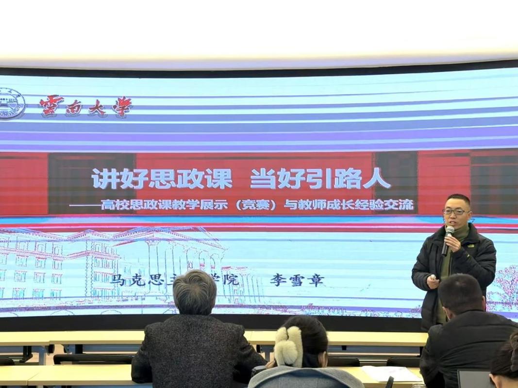 为深入学习贯彻党的二十届四中全会精神,进一步提升思想政治理论课教学质量,强化育人实效,1月14日下午,学院特邀云南大学马克思主义学院李雪章教授作《讲好思政课 当好引路人》专题讲座。讲座由学院王翔宇副院长主持,全体专职思政课教师参加讲座。