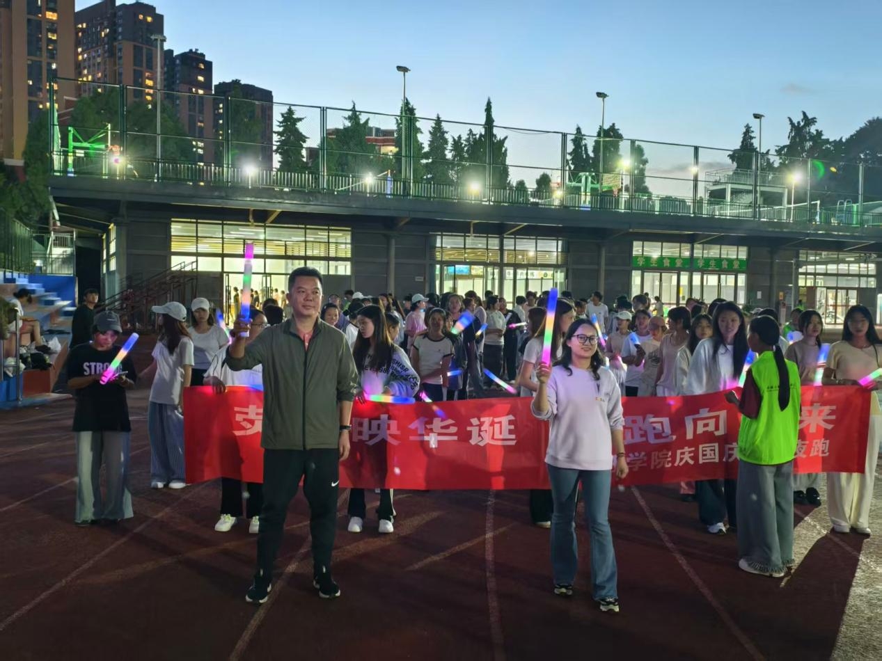 为进一步厚植师生爱国情怀,丰富校园文化生活,9月29日晚,烹饪学院在学校本部足球场成功举办“荧光映华诞,奔跑向未来”主题夜跑活动。百余名师生身着荧光装备,以活力奔跑的方式致敬祖国,在夜色中谱写了一曲青春与爱国交织的动人乐章。
