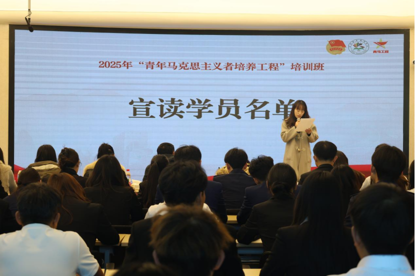 仪式在激昂的团歌声中拉开帷幕。校团委干事何沁心宣读了2025年“青马工程”培训班参训学员名单。经团支部推荐、二级学院初选、校团委复审及校内公示等程序,最终确定73名同学为2025年“青马工程”培养对象,涵盖全校8个二级学院。