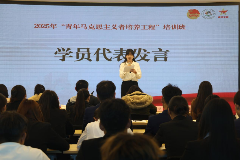 学员代表粟于豪作表态发言,她表示将始终牢记习近平总书记的殷切嘱托,将个人理想追求融入时代发展,努力将学习成果转化为服务人民、奉献社会的实际行动,以青春奋斗践行青马使命。