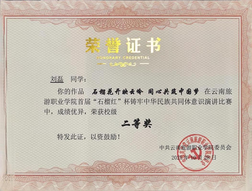 经过激烈角逐,外语学院刘磊同学在比赛中表现优异,荣获校级二等奖。此次比赛不仅为师生提供了展示才华的舞台,更成为一场深刻的民族团结教育实践,有效实现了以赛促学、以赛促教的育人目标。