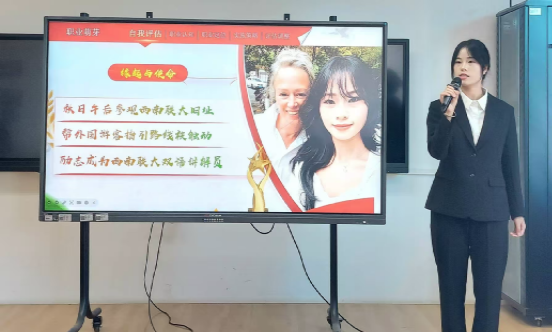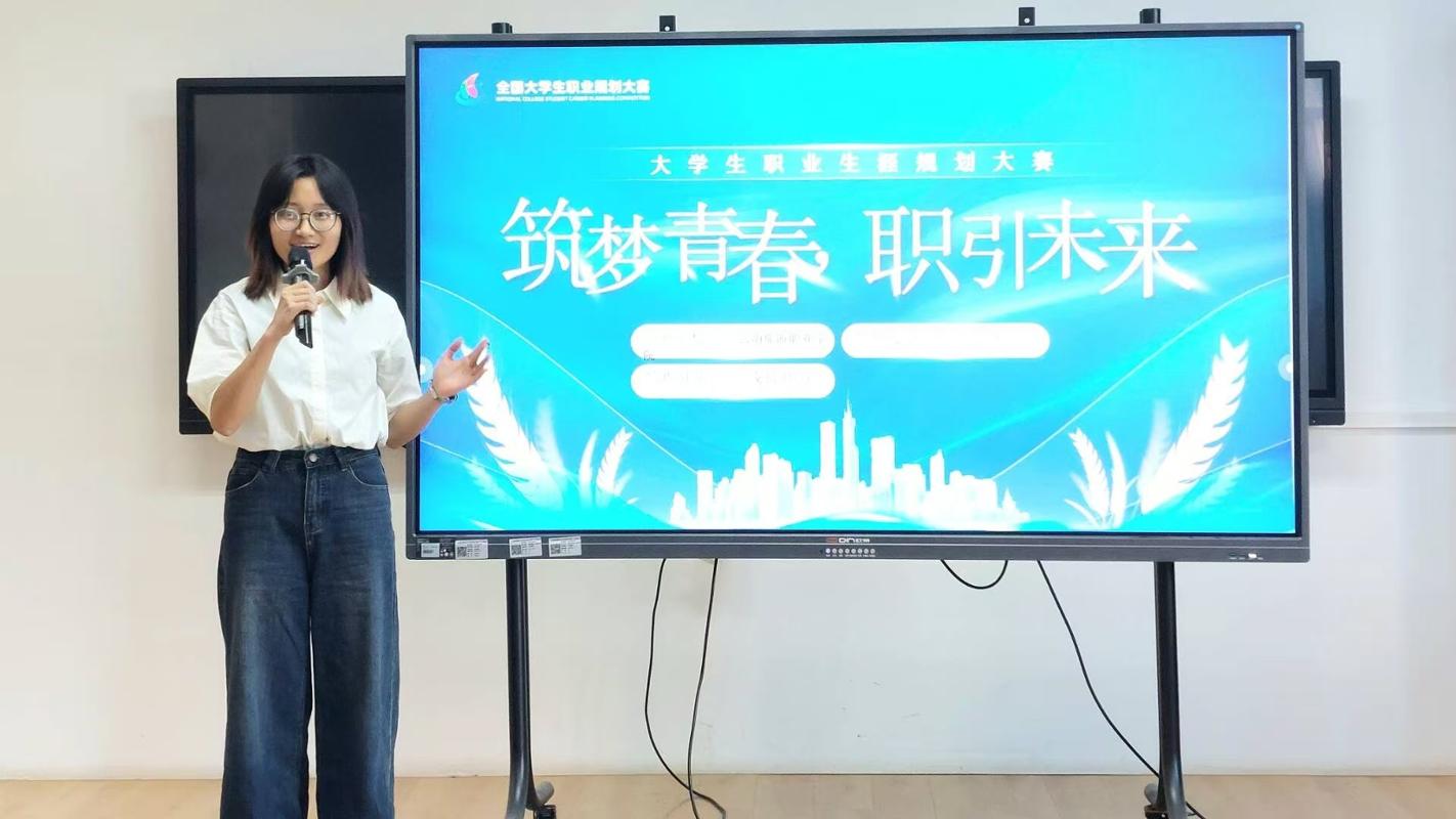 比赛充分展现了当代大学生敏锐的创新触觉和蓬勃的发展活力;每一份规划都闪耀着智慧的光芒,都承载着改变未来的无限可能,选手们的精彩表现赢得了现场观摩同学的阵阵掌声。经过激烈的角逐,最终熊晓璐同学凭借逻辑清晰的规划框架、贴合实际的实施举措及出色的临场应变能力,成功斩获一等奖。