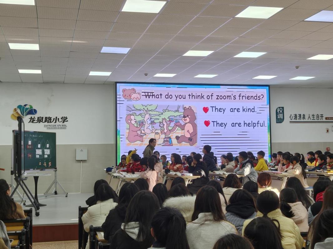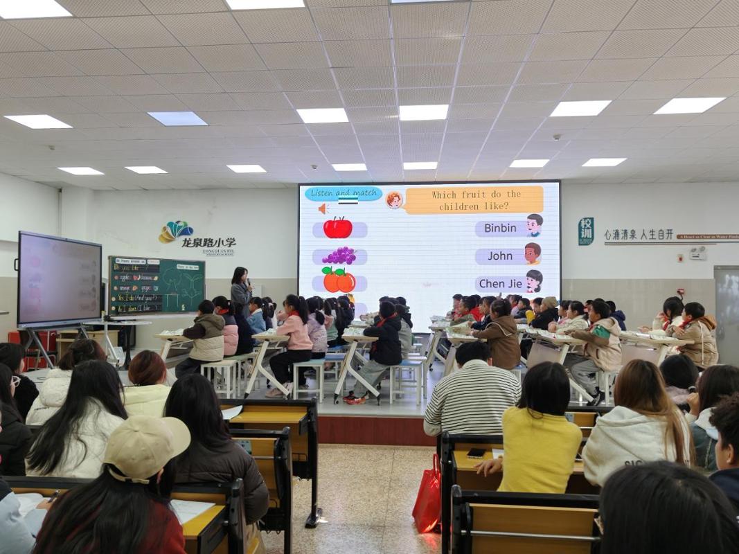 专业还首次大规模组织全体新生走出校园,走进龙泉路小学,开展沉浸式课堂观摩,让学生与真实课堂场景深度对接,直观感受优秀教师的课堂驾驭、学情把控及互动技巧,实现理论向实践的高效转化。同时,鲜活的教学案例让学生明晰小学英语教学的实际需求与重难点,增强职业认知。更激发了学生的教学热情,锤炼了职业素养,为后续专业课学习、实习及未来执教奠定了坚实基础。
