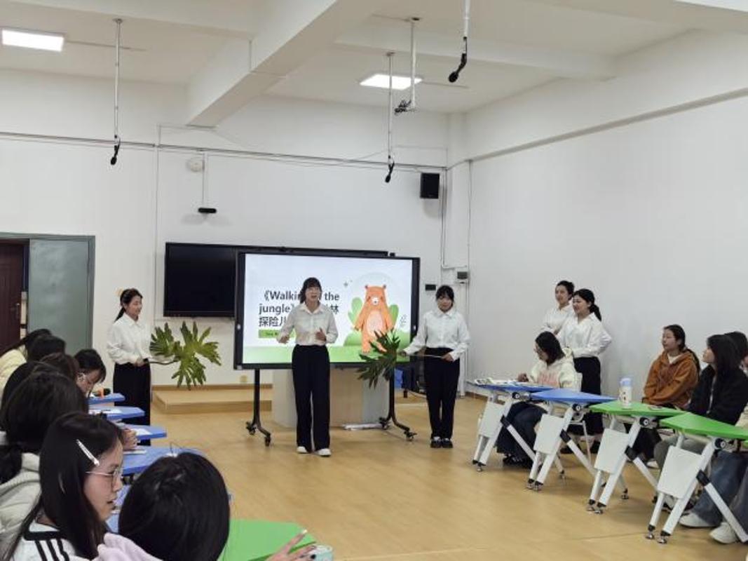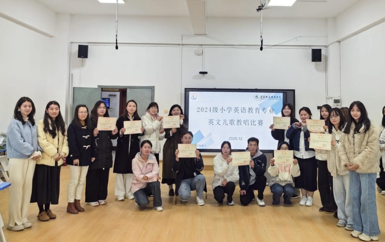 为提升小学英语教育专业学生的教师职业技能、英语语音水平与学科素养,搭建学以致用的实践平台,丰富校园文化生活,小学英语教育专业于12月17日成功举办2024级小学英语教育专业英文儿歌教唱比赛决赛。作为专业第三届英文儿歌教唱赛事,本次比赛创新采用个人赛与小组赛并行的形式,吸引了同学们踊跃参与。