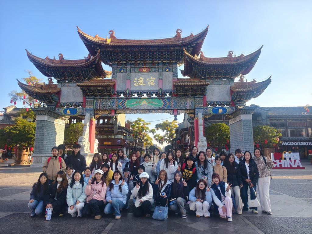 12月2日下午,学生们在官渡古镇开展研学活动。学生们在导游老师的带领下欣赏和讲解金刚塔的元代藏式风格、妙湛寺的明清榫卯结构。学生们了解到官渡古镇是商贸与文旅深度融合的经典案例。同时,官渡古镇还汇集了很多非遗美食,通过此次研学活动,学生们沉浸式感受到了古镇的烟火气息与文化底蕴。