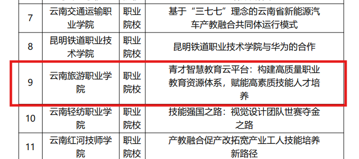 我校推选报送的《青才智慧教育云平台:构建高质量职业教育资源体系,赋能高素质技能人才培养》案例,成功入选“产教融合典型案例”(共20项)。该案例聚焦智慧教育平台建设,有效推动了教学方式变革与人才培养质量提升,生动彰显着学校不断深化产教融合及校企合作的实践成效。